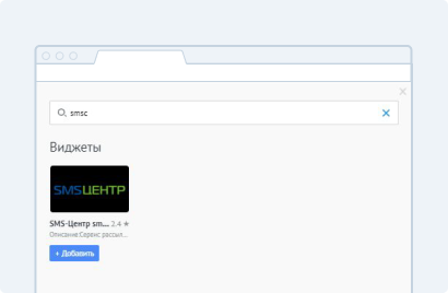4. В поиске напишите smsc.ru и выберите виджет «SMSЦентр» кнопкой «+Добавить».