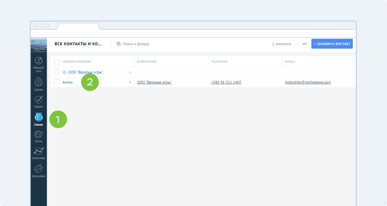 1. Перейдите в «Списки» из бокового меню и отметьте галочкой клиента.
