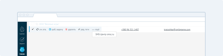 2. После этого откроется меню с дополнительными функциями — нажмите на пункт «…ещё» и в выпадающем окне выберете виджет «SMS-Центр smsc.ru».